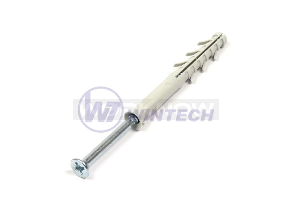 Rámová hmoždinka s vrutem pozidrive určená pro kotvení do betonu, cihel, tvárnic apod. Mechanicky stálá od -40 °C do +120 °C. Kompletní sada obsahuje hmoždinku a vrut, která zaručuje snadnou a spolehlivou montáž, aplikuje se přes upevňovaný materiál, pozi