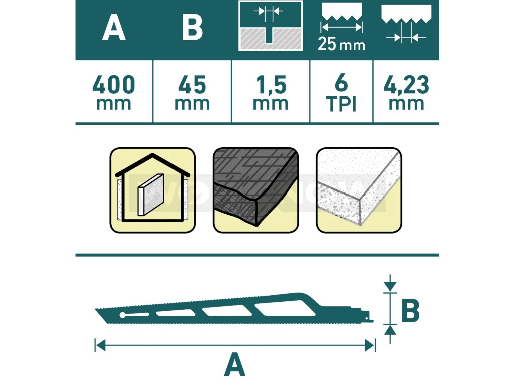 Plátek do pily ocasky na izolační mat./oboustranný, 400x45x1,5mm, nerez