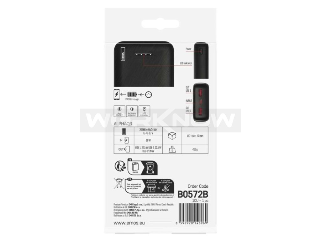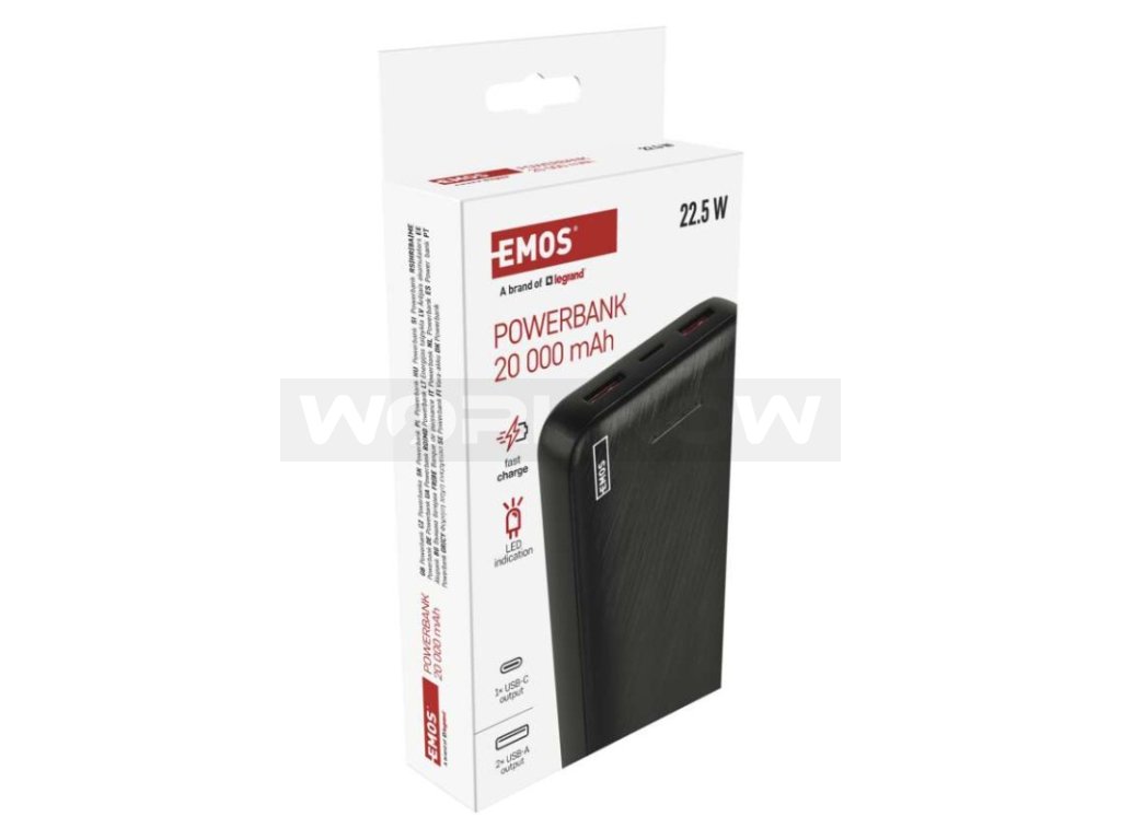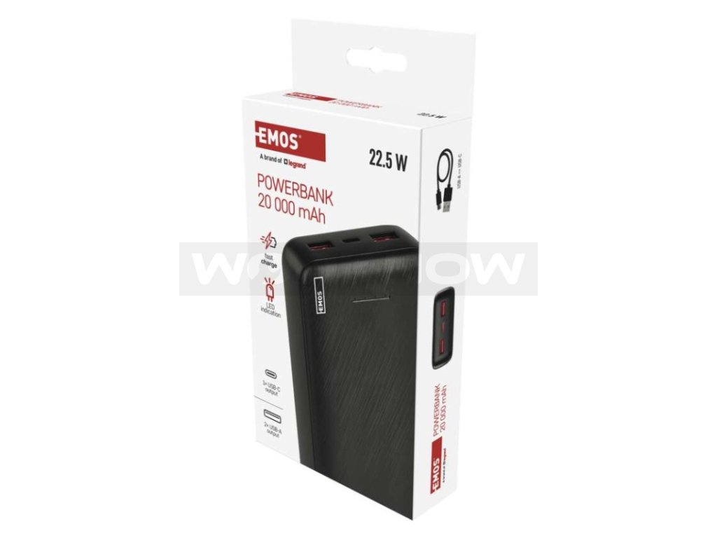 Powerbanka EMOS AlphaQ3, 20 000 mAh, 22,5 W, černá