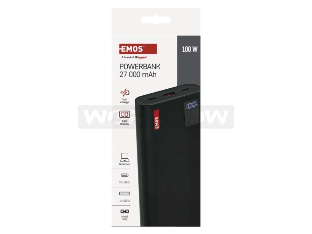 Powerbanka EMOS NTBF30, 27 000 mAh, 100 W PD, černá