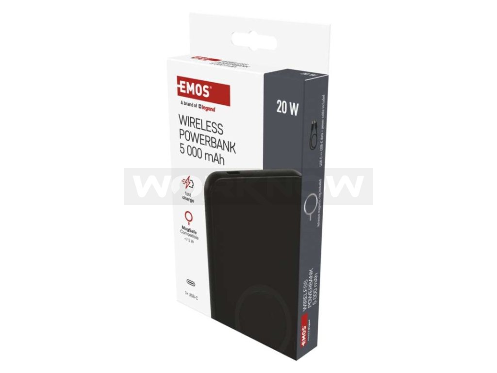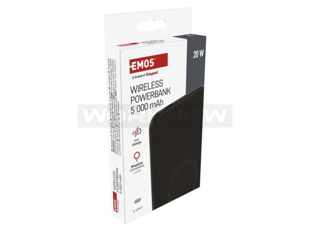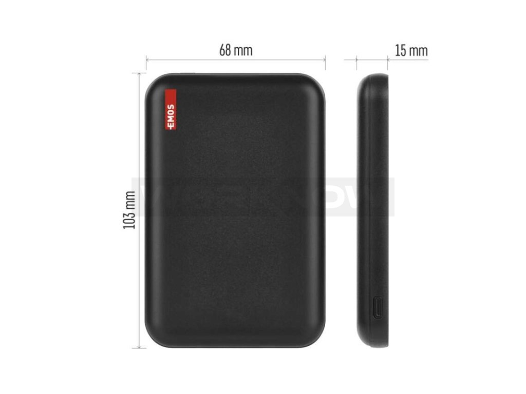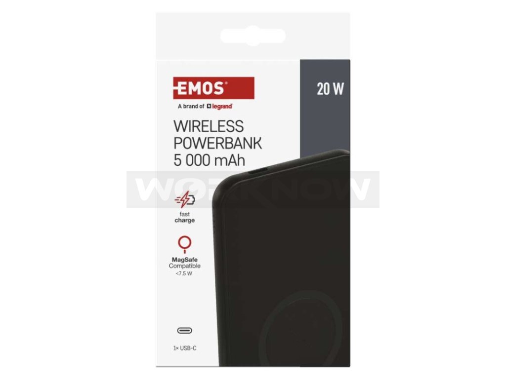 Powerbanka EMOS WI 521, 5 000 mAh, 20 W+Wireless, černá