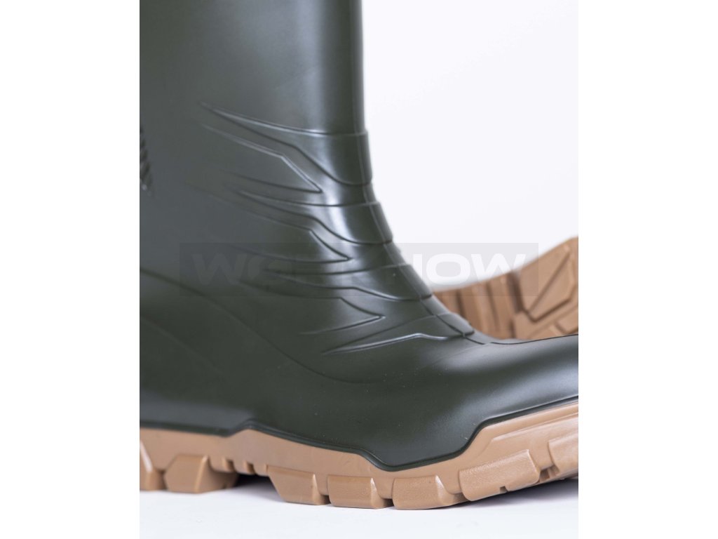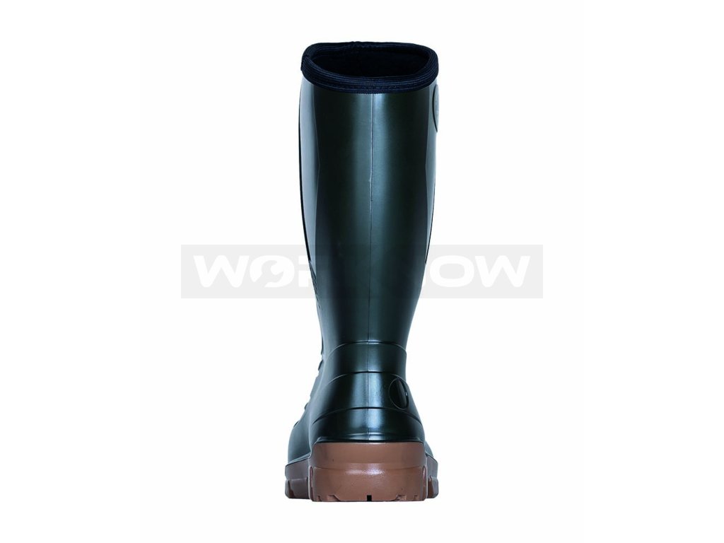 Odolné pracovní holínky vyrobené z kvalitního PVC, které zajišťuje spolehlivou voděodolnost a odolnost proti opotřebení. Protiskluzová podešev poskytuje bezpečný krok i na mokrém a kluzkém povrchu. Vnitřní kožešinová podšívka udržuje nohy v teple a pohodlí i při práci v chladném počasí.