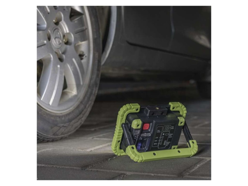 Na první pohled poznáte, že to není žádný obr, ale právě v tom se skrývá jeho kouzlo. Ať už se doslova živíte rukama (jako elektrikář, instalatér nebo plynař), anebo jen vlastníte rodinný dům, kde je pořád co budovat a opravovat, bude vám nepřetržitě krýt záda. Oproti běžným pracovním svítilnám má mnohem vyšší světelný tok (až 1 000 lm), 10W COB LED čip, 3 režimy svícení (100 %, 50 % nebo 20 %) a praktický stojan. Díky němu nemusíte při práci držet reflektor v ruce (tak jako svítilnu), ale postavíte si ho přesně tam, kde je nejvíce potřeba. A to nejlepší na konec, jakožto nabíjecí LED reflektor vás netrápí věčným hledáním zásuvky.