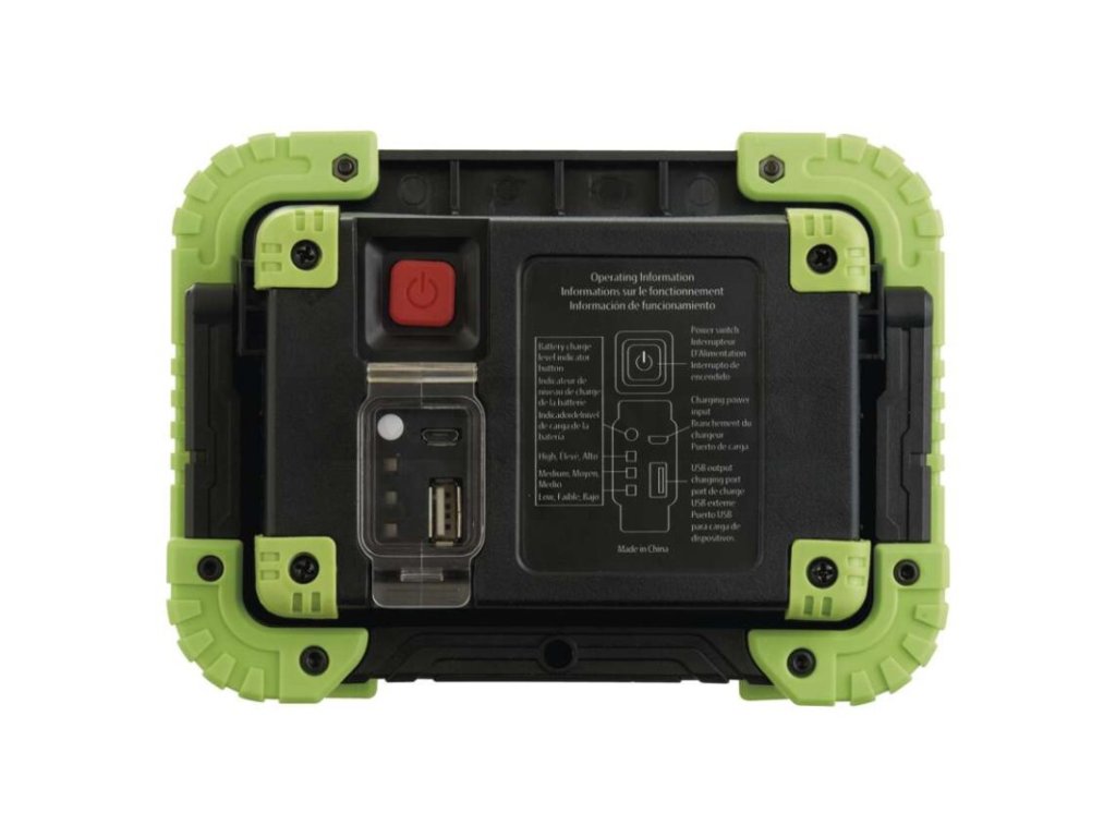 Vybitou baterii mu vždy snadno a rychle doplníte pomocí přiloženého kabelu připojeného do USB-B portu na zadní straně reflektoru. Kousek od něj najdete i klasickou USB-A zdířku, která vám v případě potřeby umožní využít tento LED reflektor i opačným způsobem – jako záložní zdroj energie.