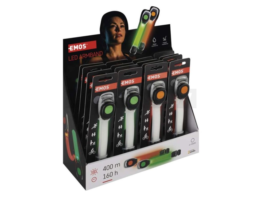 LED náramek, 10 lm, 2× CR2032, 16 ks, display box