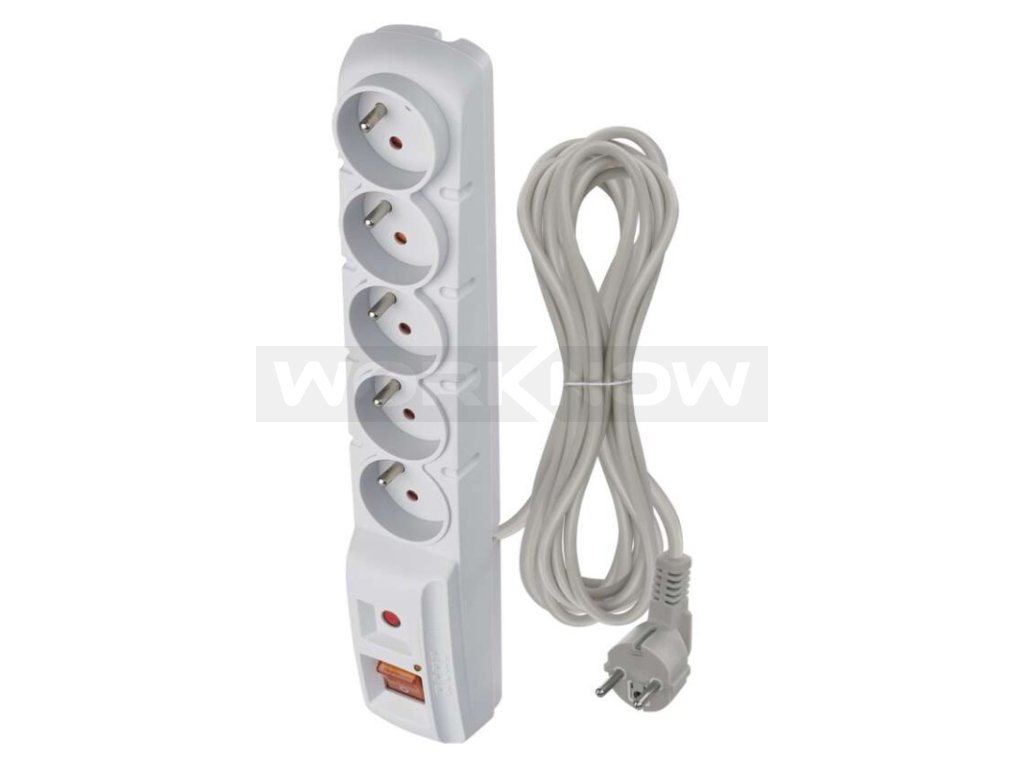Přepěťová ochrana – 5 zásuvek, 5m, šedá