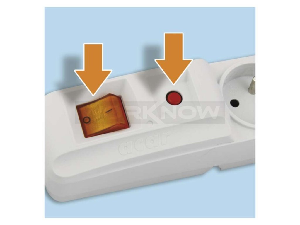 Podsvícený síťový vypínač, automatická pojistka s časovým zpožděním. 4 možné směry uspořádání síťového přívodu.