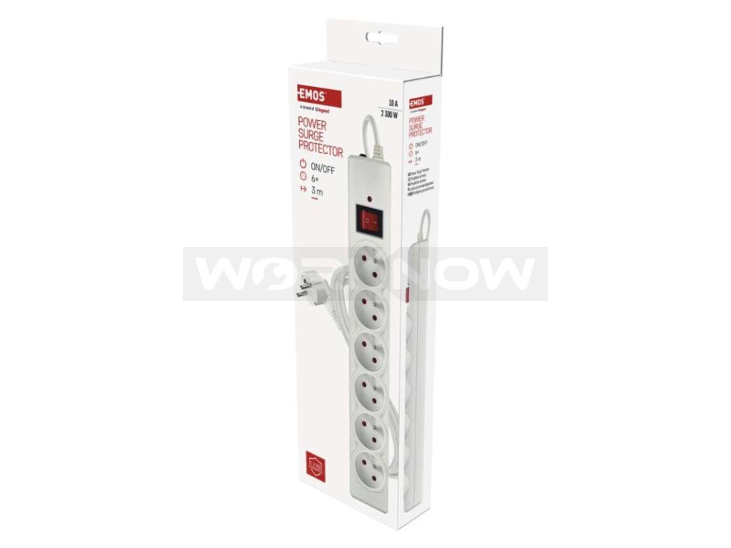 Přepěťová ochrana – 6 zásuvek, 3 m, bílá