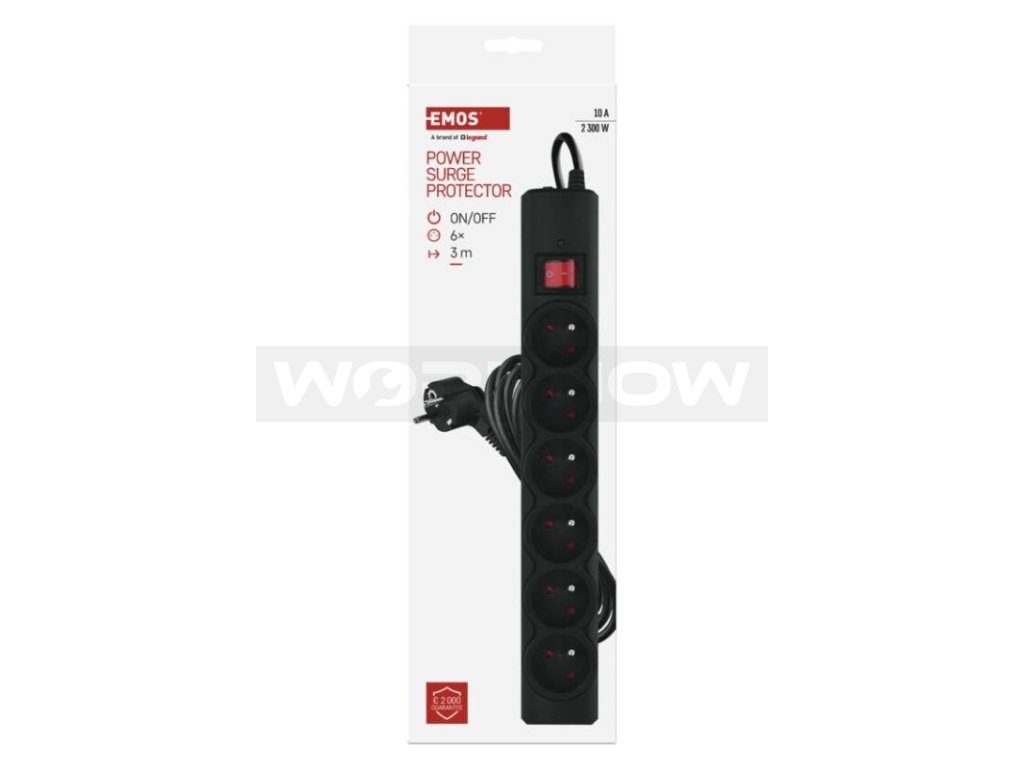 Přepěťová ochrana – 6 zásuvek, 3 m, černá