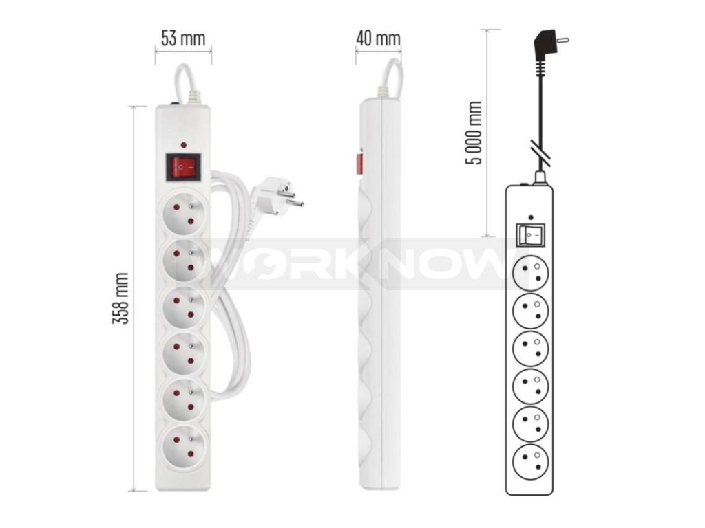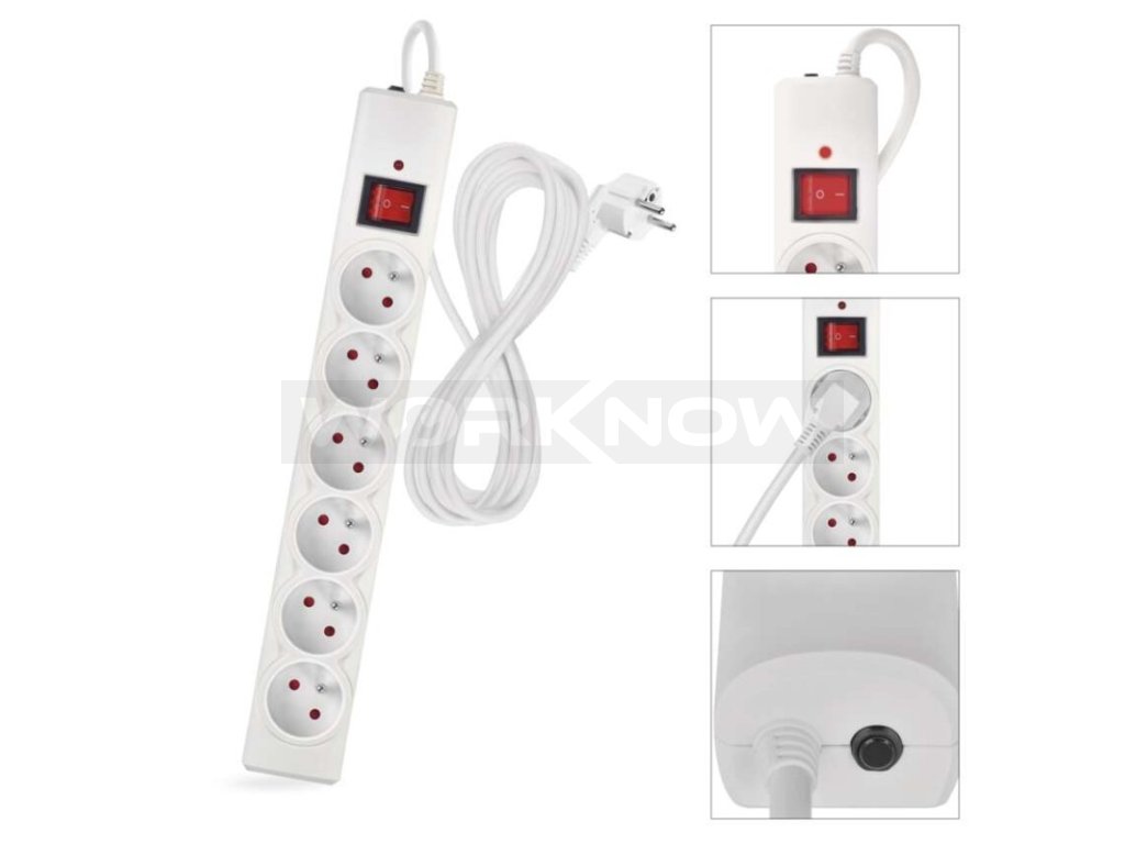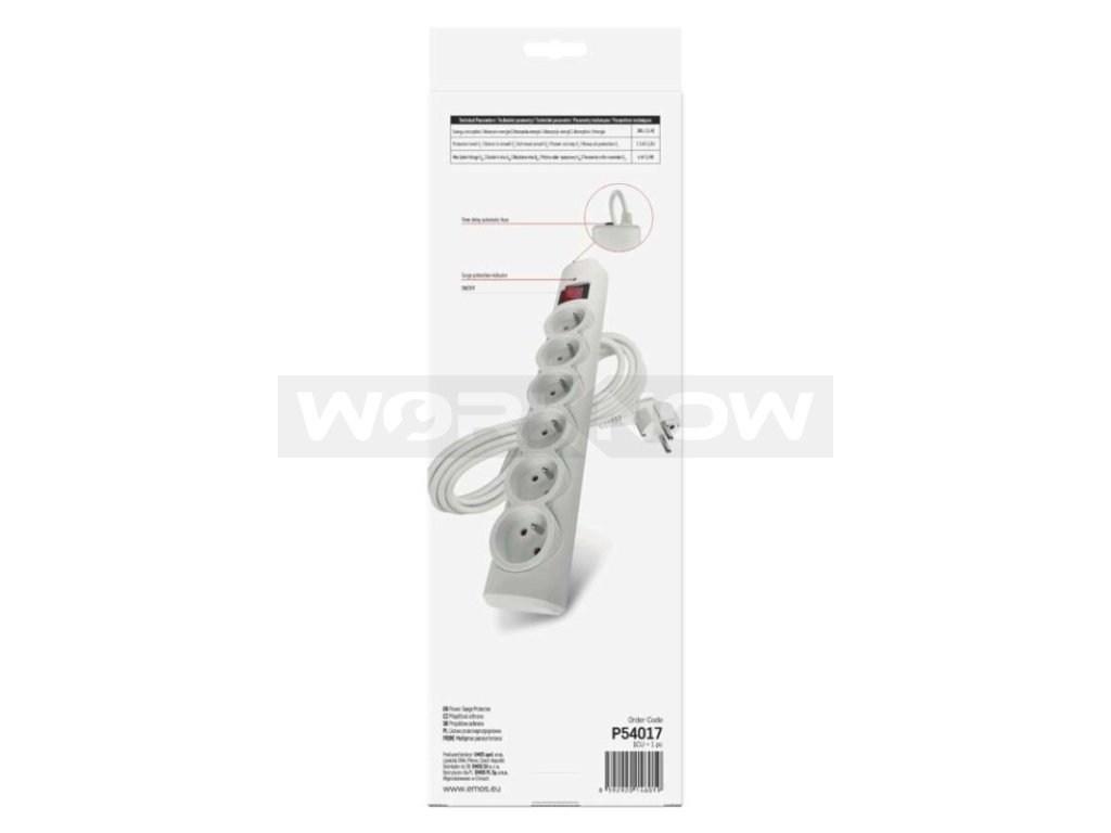 Přepěťová ochrana – 6 zásuvek, 5 m, bílá