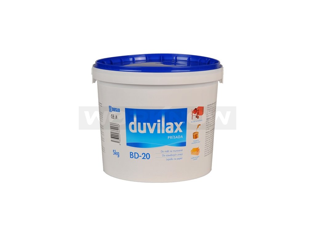 Měkčená disperze polyvinylacetátu, která se používá ve stavebnictví jako plastifikační a provzdušňovací přísada do malt, omítek, cementových potěrů a jiných stavebních směsí v množství do 5% na hmotnost cementu, resp. vápna.Zlepšuje zpracovatelnost směsi, zvyšuje přilnavost, pružnost, konečnou pevnost a snižuje propustnost vody. Přidává se do směsi společně se záměsovou vodou. Používá se na výrobu interiérových nátěrových látek, kde plní funkci disperzního pojiva a zabezpečuje odolnost proti otěru. Zředěný Duvilax BD - 20 s vodou v poměru 1:4 lze použít pro penetraci nebo napouštění savých podkladů před nanášením stavebních cementových či disperzních lepidel a stěrek.
