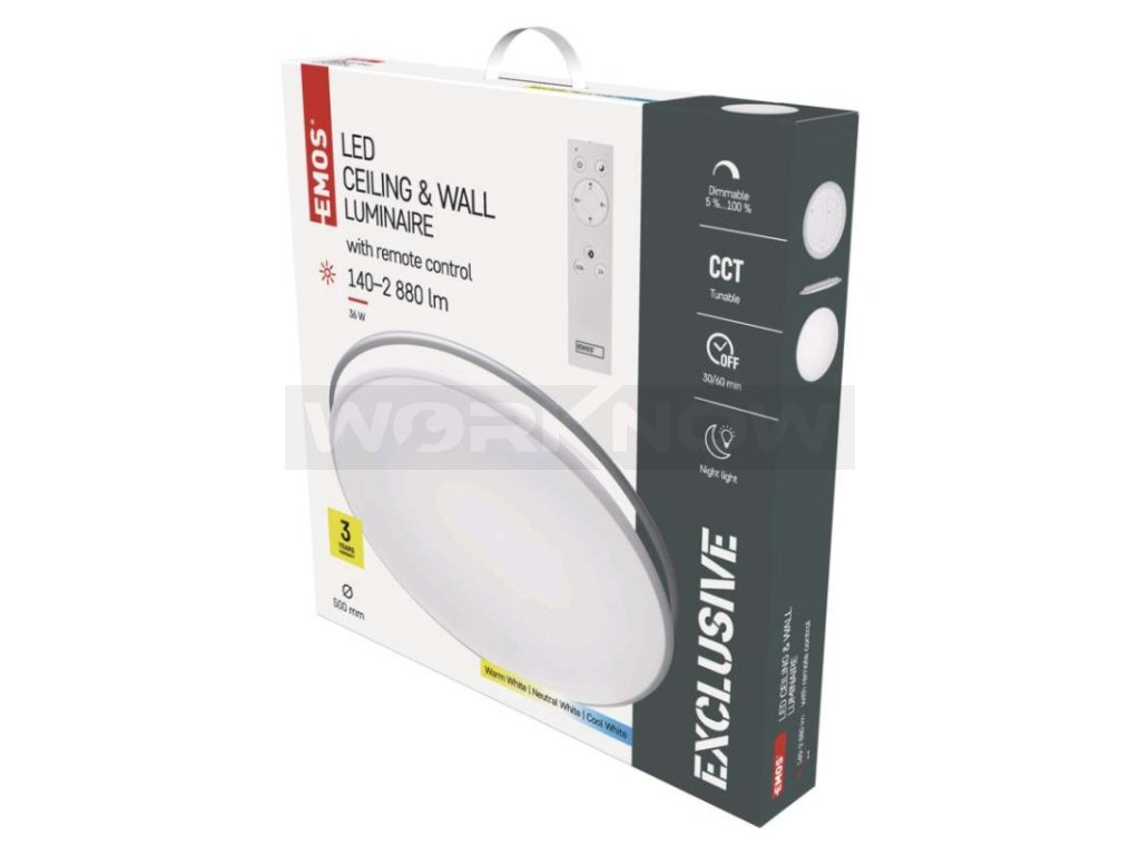 Můžete si u něj nastavit barvu světla od studené bílé po teplou bílou, nechybí funkce stmívání, nebo ambientního osvětlení - která navozuje kouzelný efekt osvitu stropu okolo svítidla. Nabízí se ve dvou variantách dle průměru a příkonu. Přisazené svítidlo EXCLUSIVE má klasický kruhový tvar a uvnitř ukrývá moderní, velmi úsporné a trvanlivé LED diody s vysokou světelnou účinností a životností 25 000 hodin. Skrz krycí mléčný difuzor vyzařuje světlo rovnoměrně a příjemně v širokém úhlu 115°. Výhodou oblíbeného svítidla EXCLUSIVE je také prodloužená tříletá záruka.