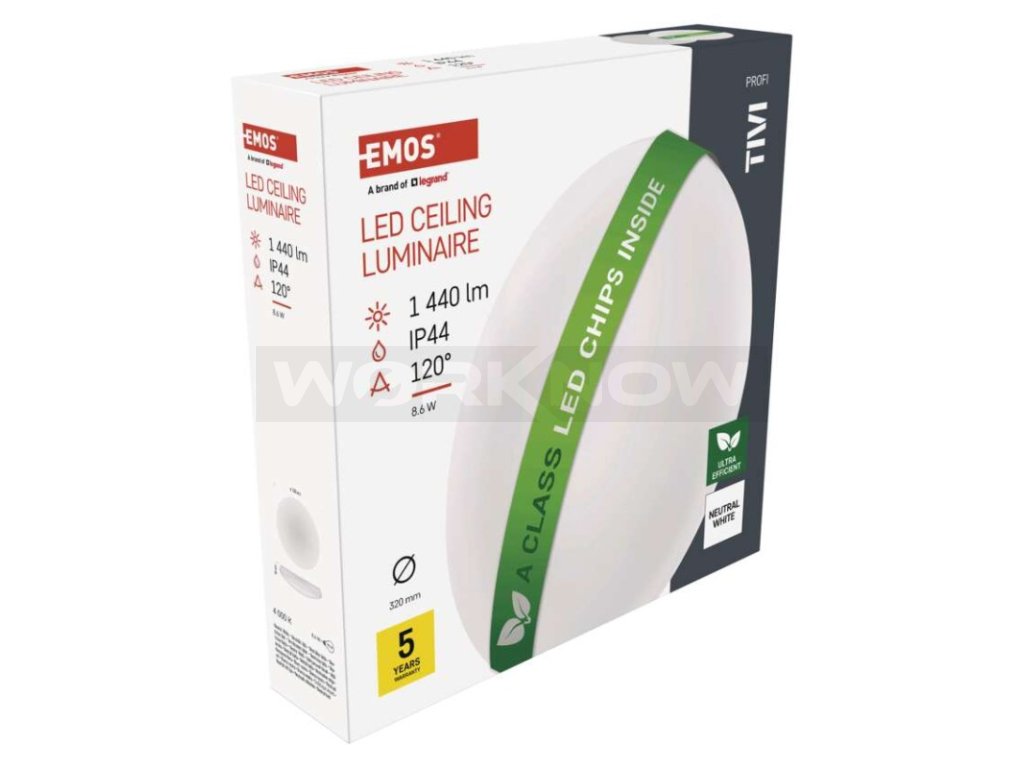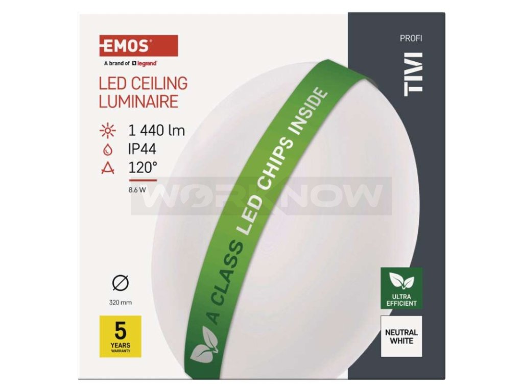 LED přisazené svítidlo TIVI, A CLASS, kruhové bílé 8,6W, IP44, neutrální bílá