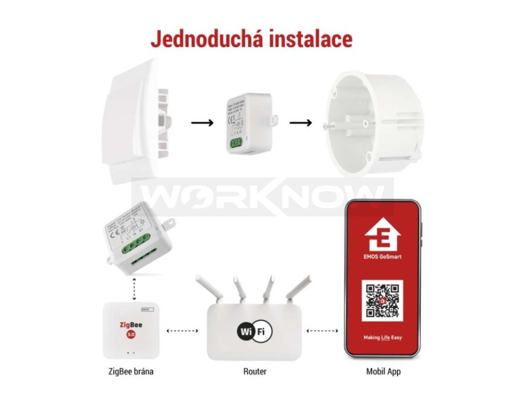 Modul propojte se ZigBee bránou a spárujte ho s mobilní aplikací EMOS GoSmart, která je dostupná pro OS Android i iOS. Díky tomu, že jsou moduly trvale napájeny, fungují zároveň jako prodlužovač vašeho Zigbee signálu, díky čemu můžete spravovat stále větší počet ZigBee zařízení v jedné síti.