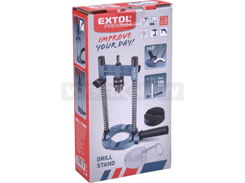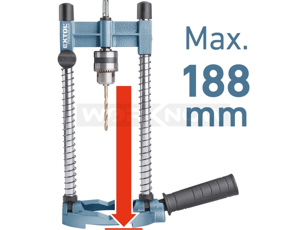 | Doplňující parametr: | max výška mezi sklíčidlem a spodní části základny je 188mm a max. průměr vrtání (při použití korunek) je 75mm, což je průměr otv |