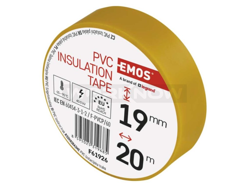 Izolační elektro páska s délkou 20 m a šířkou 19 mm je vyrobena z plastifikovaného PVC materiálu. Její lepidlo z kaučuku zajišťuje silnou lepivost a přilnavost.