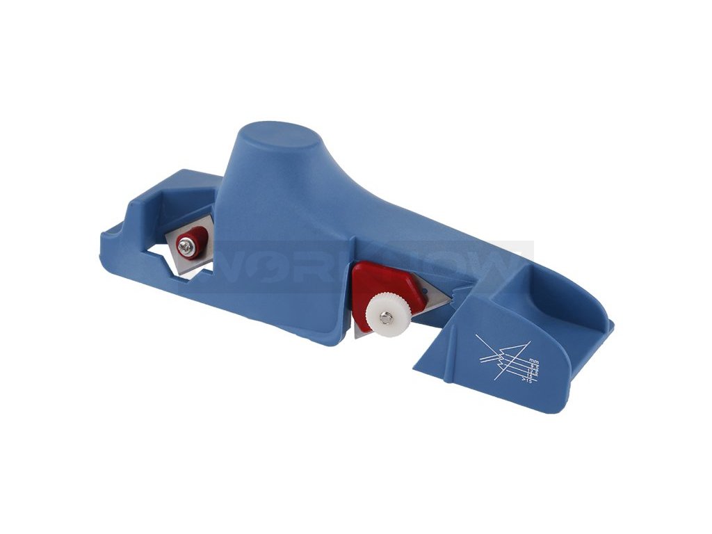 Plastový hoblík na sádrokarton s ocelovými břity, materiál : kvalitní tvrdý plast, přesná hrana, kvalitní uchycení nožů, použití : pro ořez hran sádrokartonů - vytvoření hrany (plochy) pro přilnutí spárovacího brousitelného tmelu, balení : papírový box s eurootvorem.Doplňkové parametry