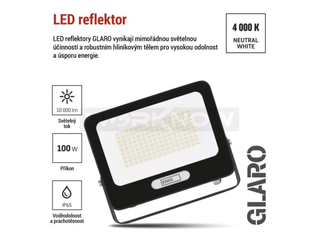 LED reflektor GLARO 100W, černý, IP65, 10000 lm, neutrální bílá