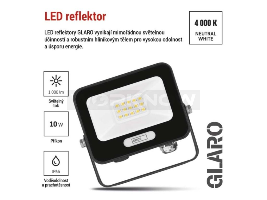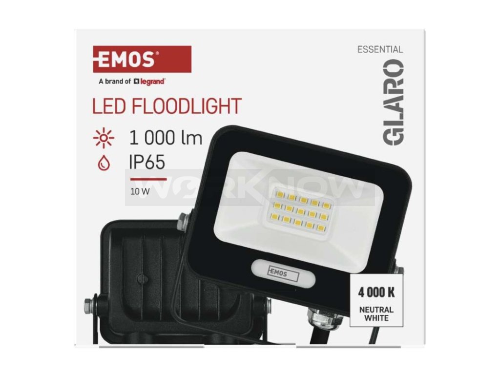 LED reflektor GLARO 10W, černý, IP65, 1000 lm, neutrální bílá