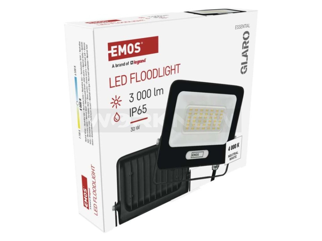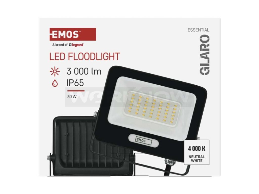 LED reflektor GLARO 30W, černý, IP65, 3000 lm, neutrální bílá