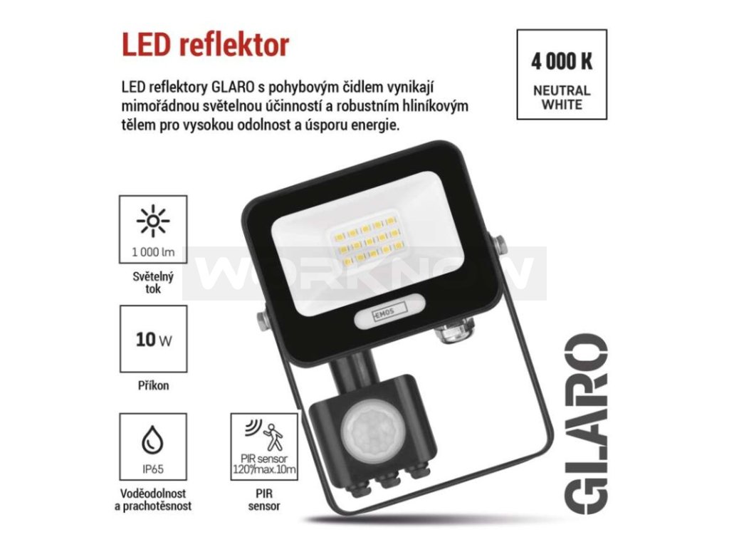 LED reflektor GLARO s pohybovým čidlem, 10 W, černý, IP54, 1000 lm, neutrální bílá