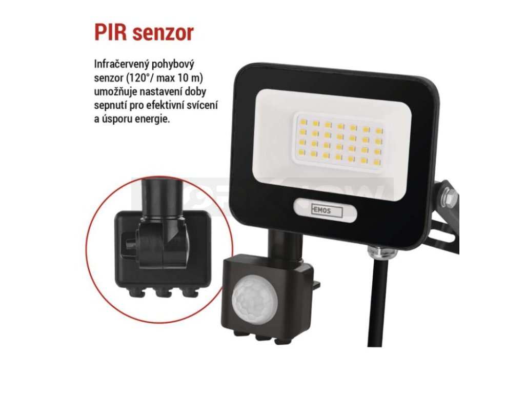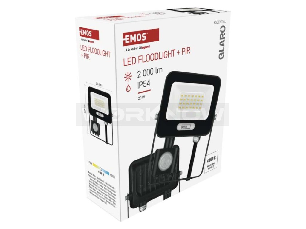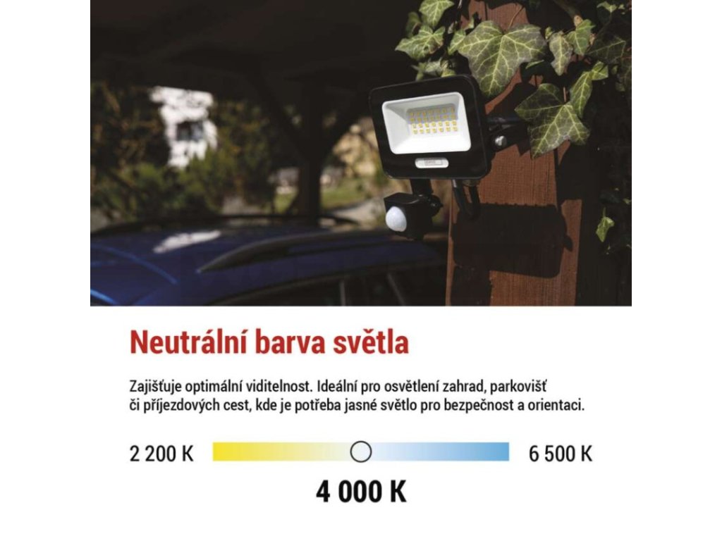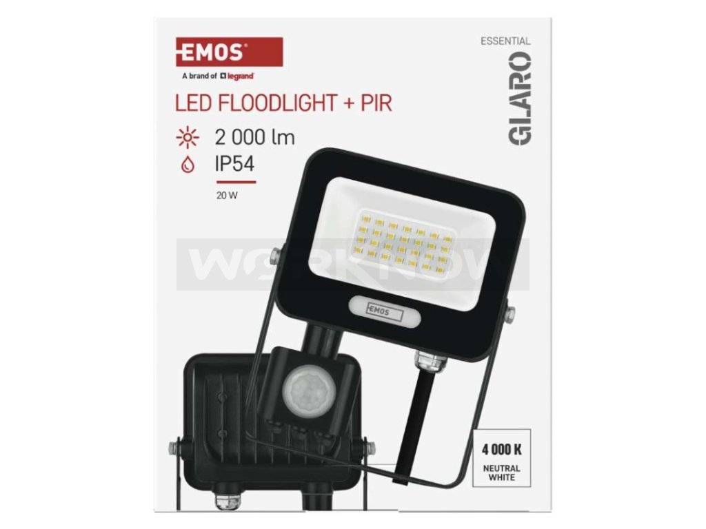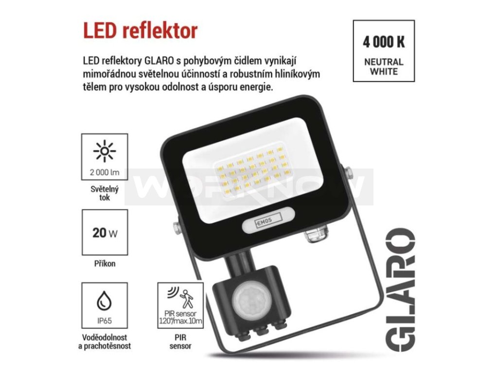 LED reflektor GLARO s pohybovým čidlem, 20 W, černý, IP54, 2000 lm, neutrální bílá