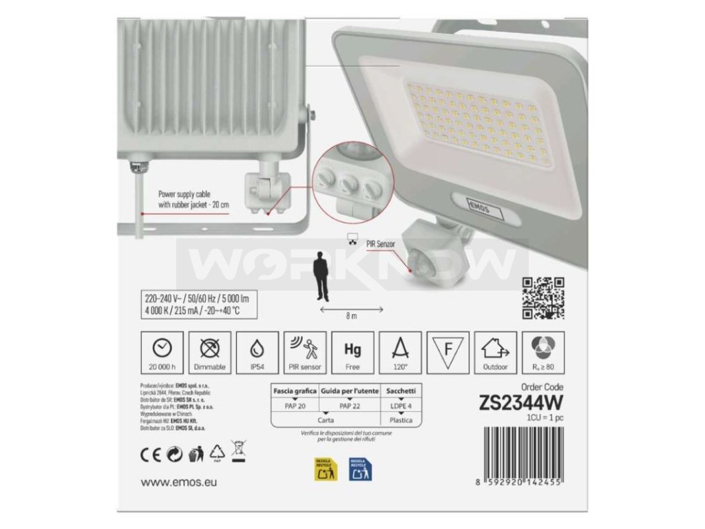 LED reflektor GLARO s pohybovým čidlem, 50 W, bílý, IP54, 5000 lm, neutrální bílá