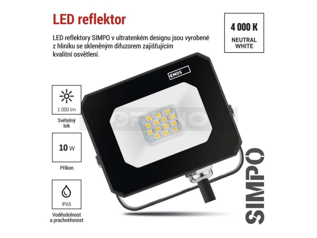 LED reflektor SIMPO 10 W, černý, neutrální bílá