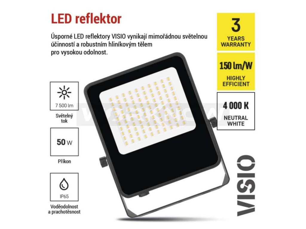 LED reflektor VISIO, 50 W, černý, neutrální bílá