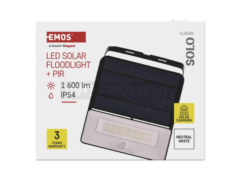 Solární LED reflektor SOLO s pohybovým čidlem, černý, neutrální bílá