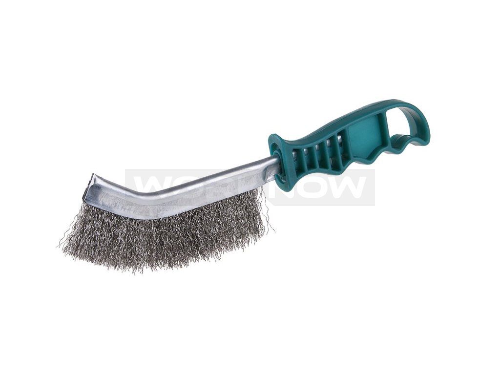 Nerez kartáč - ruční, kovové tělo s plastovou ergonimicky tvarovanou rukojetí, vlnitý drát - nerezová ocel, počet drátů 1480, použití: k číštění železných kovů jako je ocel, nerez, litina, … .Doplňkové parametry