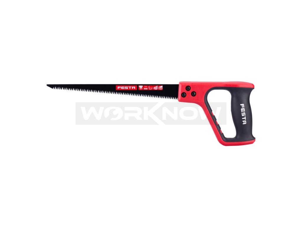 Délka pracovní plochy: 260mm, plastová pogumovaná rukojet, vysokofrekvenčně kalené trojbroušené zuby, tvrdost: 47-52HRC, ozubení: 7TPI.Proč je právě FESTA to pravé nářadí do mých rukou?