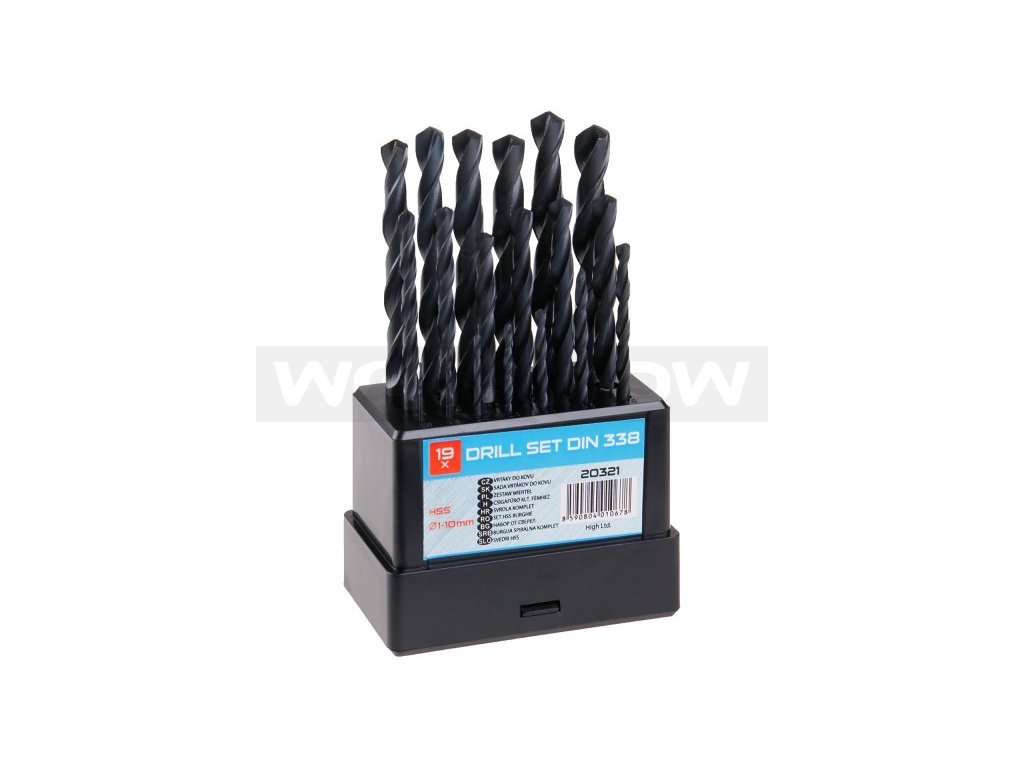 Sada vrtáků HSS DIN 338, RN, je vyrobená z kvalitní rychlořezné oceli (HSS). Přesné vyrobená šroubovice pro kvalitní výkon, přesnost a dobré středění, vybroušení úhlu špičky vrtáku 118°, pro vrtání běžné konstrukční oceli, baleno v PVC krabičce.