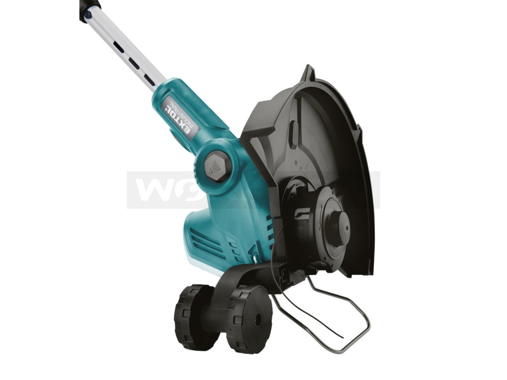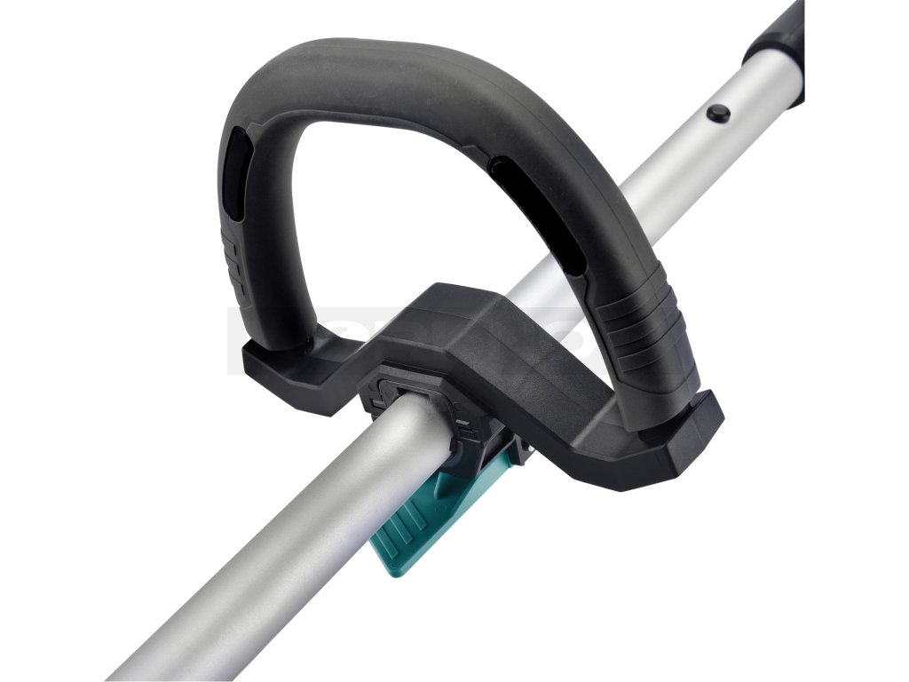 - distanční kolečko a sklopitelný oblouk usnadňuje sekání podél plotů, zdí nebo stromů a šetří sekací strunu