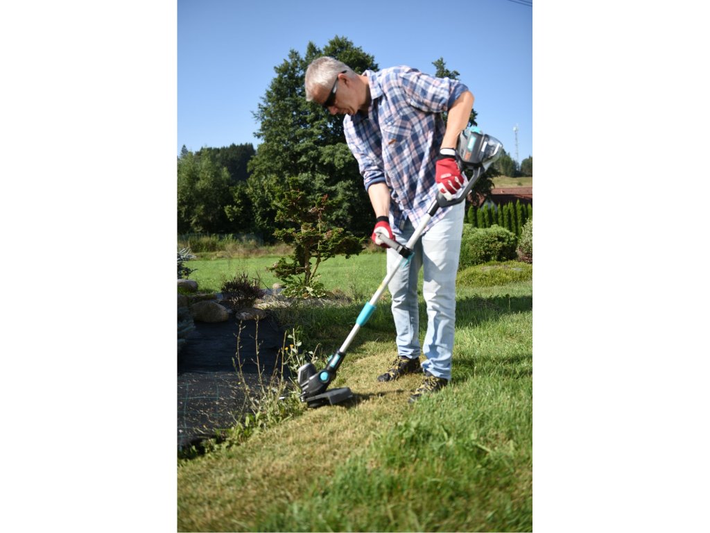 Velmi tichá strunová aku sekačka je určena k udržování zahradního trávníku, k úpravě okrajů trávníku a vyžínání trávy v těžko přístupných místech, např. u obrubníků, pod lavičkami, kolem stromů a keřů apod., které je obtížné či nemožné vysekávat pojízdnou sekačkou. Vysokokapacitní baterie umožňuje dlouhodobou práci a velký sekací výkon. Díky napájení z baterie již není nutné dávat pozor na napájecí kabel a manipulace s ní je pohodlnější. Díky Li-ion akumulátoru je možné sekačku kdykoliv dobíjet, aniž by se tím snižovala kapacita akumulátoru. Li-ion akumulátor ztrácí energii vlivem samovybíjení velmi pomalu a vydrží dlouho nabitý.- pogumovaná rukojeť brání vysmeknutí, tlumí vibrace a zpříjemňuje držení při práci, je v ní také vložena náhradní cívka se strunou