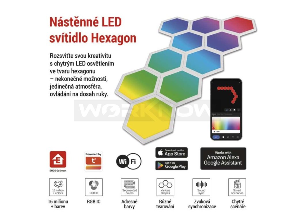 GoSmart LED svítidlo Hexagon, startovací sada, 10 dílů, 19 W, RGBIC stmívatelné, WiFi