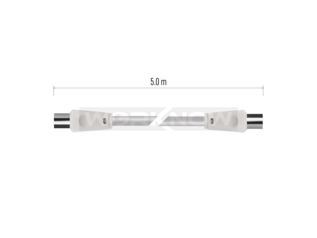 Anténní koaxiální kabel s vidlicí a zásuvkou IEC. Kabel má dvojité stínění pro redukci elektromagnetického rušení. Délka kabelu je 5 m. Koaxiální kabel je vhodný pro SAT, DVB-T, ANT, DECODER, FLAT TV a TV.