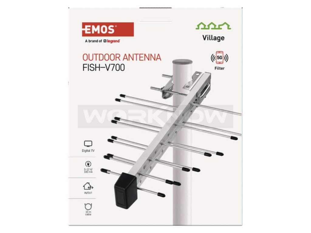 Seznamte se s profesionální logaritmickou aktivní venkovní anténou s vysokým ziskem FISH–V700 značky EMOS, která je určena k příjmu televizního vysílání DVB-T i DVB-T2.
