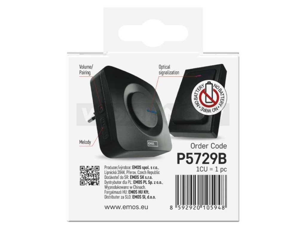 Bezbateriový domovní bezdrátový zvonek P5729B do zásuvky P5729B