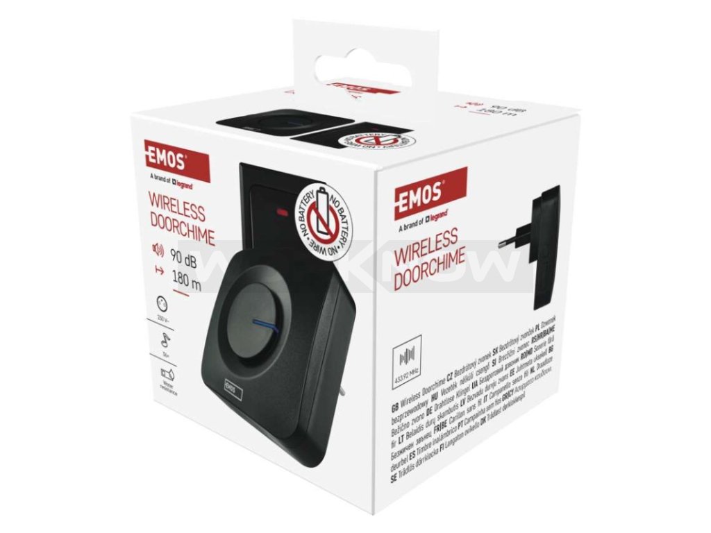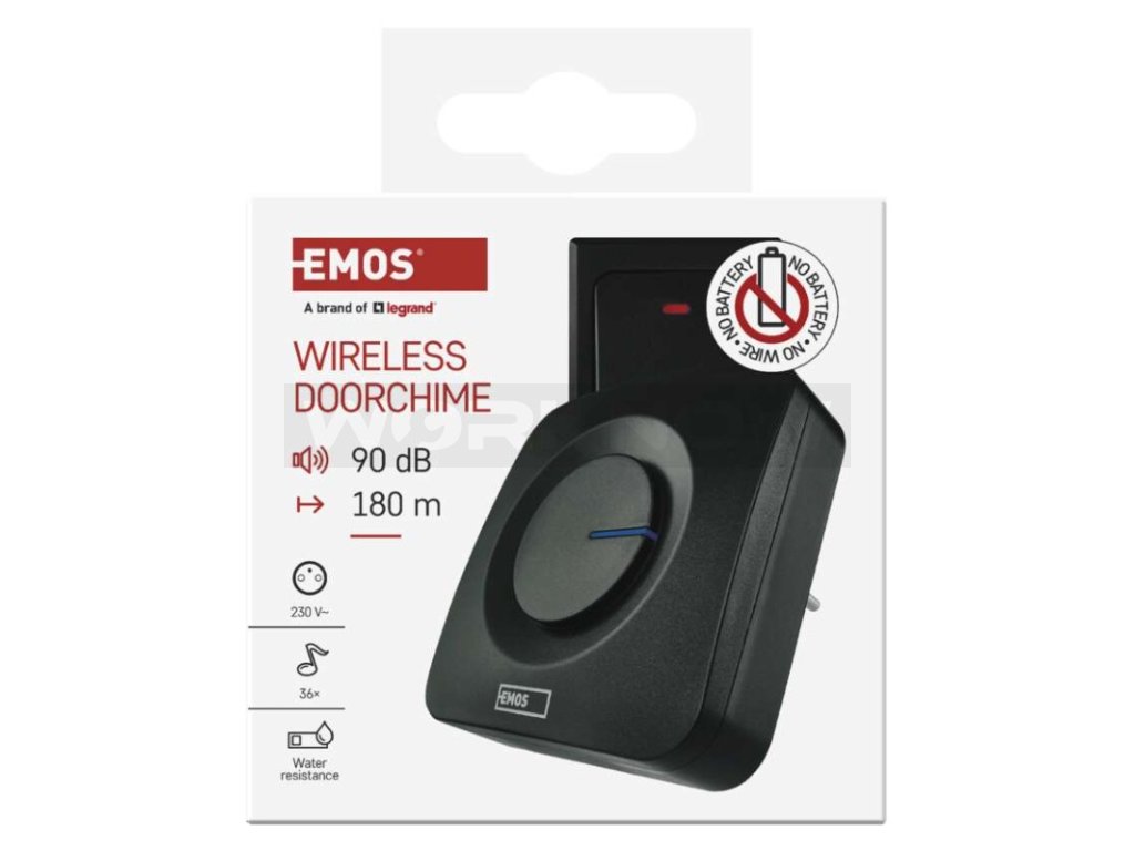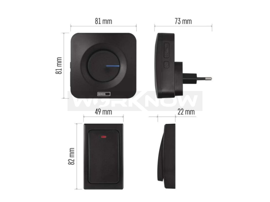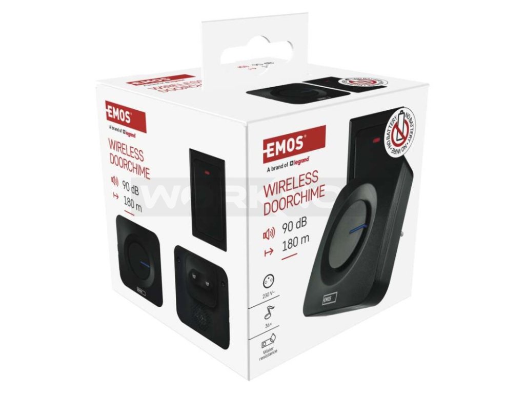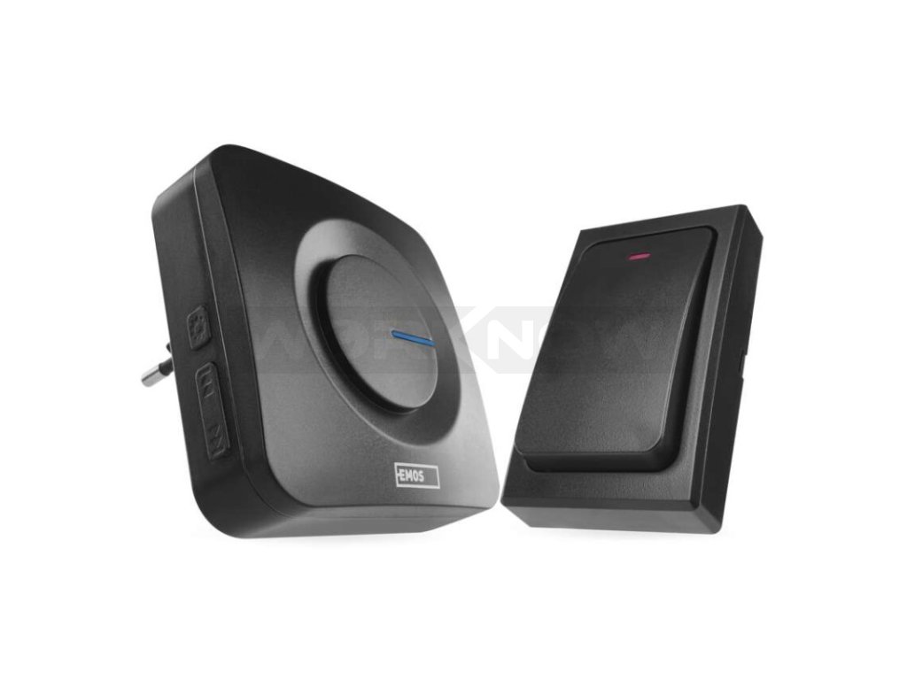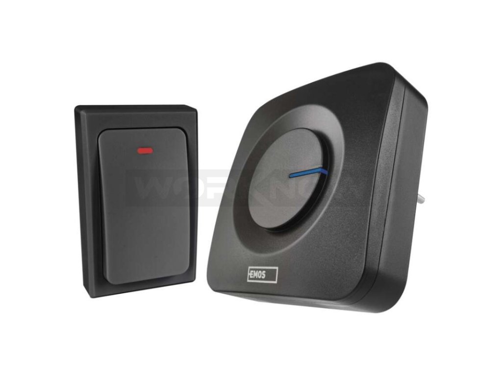 Moderní domovní zvonek EMOS v elegantní černé barvě má zaoblené tvary a na svět svítí dvěma LED diodami, které signalizují jeho bezchybnou funkci. Dioda na tlačítku má barvu červenou, dioda na zvonku pak modrou. Mezi sebou pak obě části soupravy komunikují prostřednictvím rádiových vln o frekvenci 433,92 MHz.