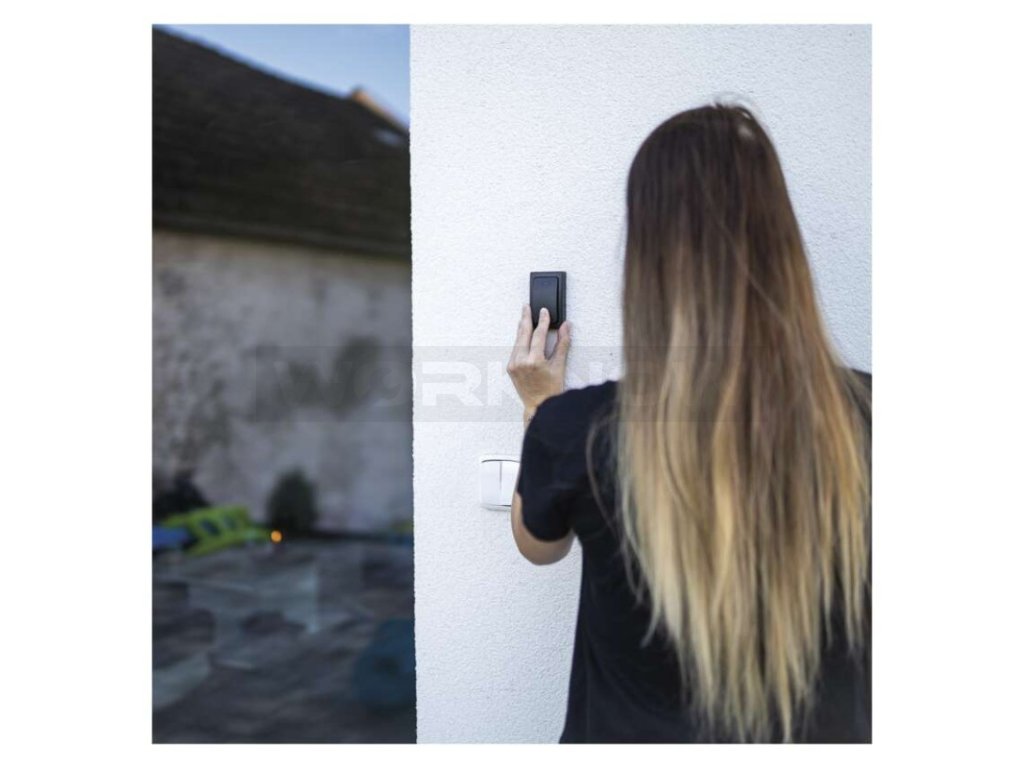 Už žádné tahání drátů a vrtání do zdi. Voděodolné tlačítko a domácí zvonek mezi sebou komunikují na vzdálenost až 180 metrů. Zvonek doma zapojíte do vybrané zásuvky a po napárování tlačítko pomocí dodané oboustranné lepící pásky umístíte kam potřebujete. Vše je funkční během pár minut.
