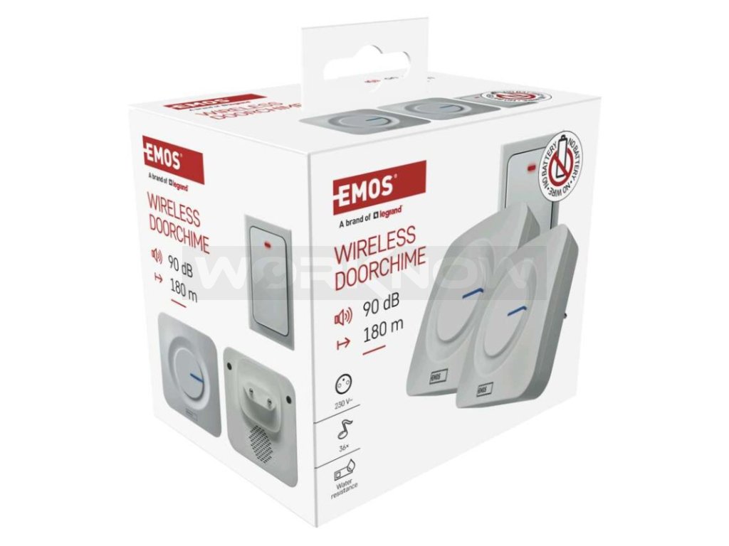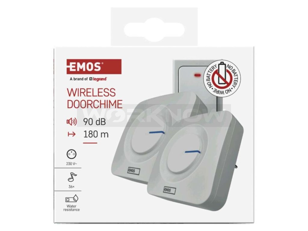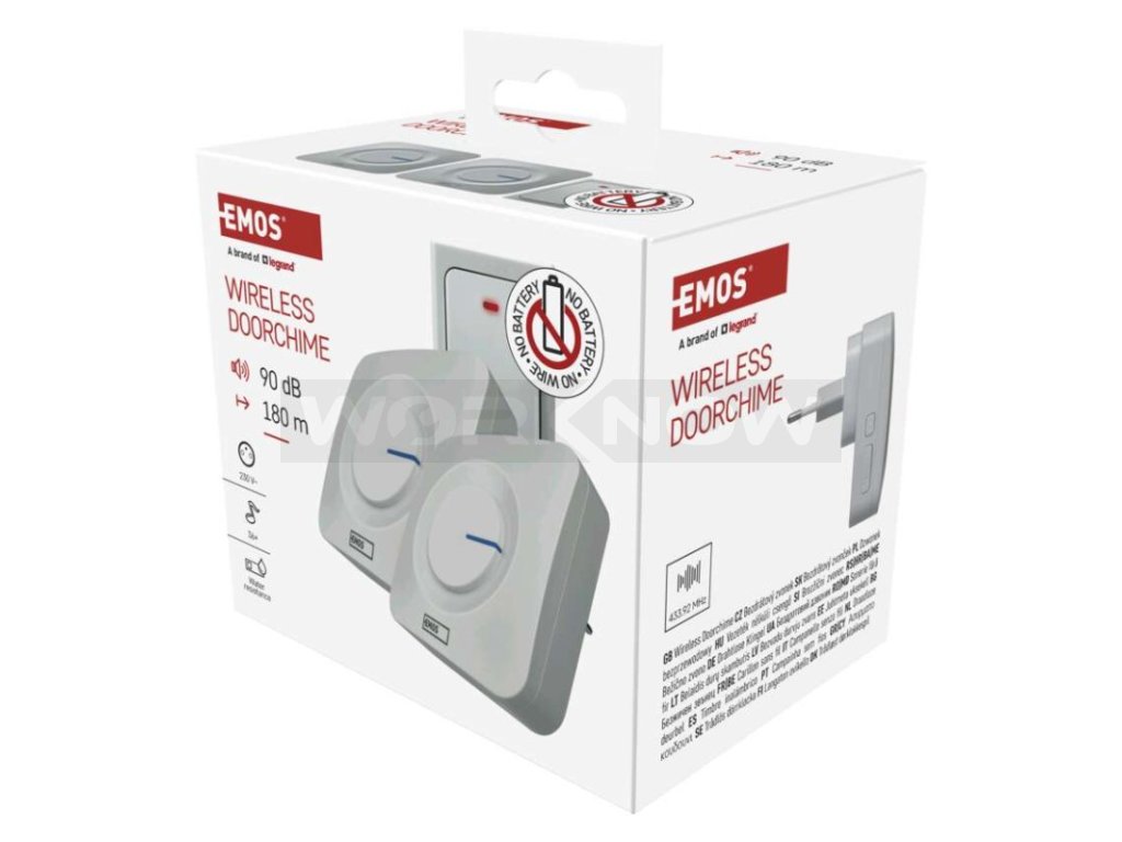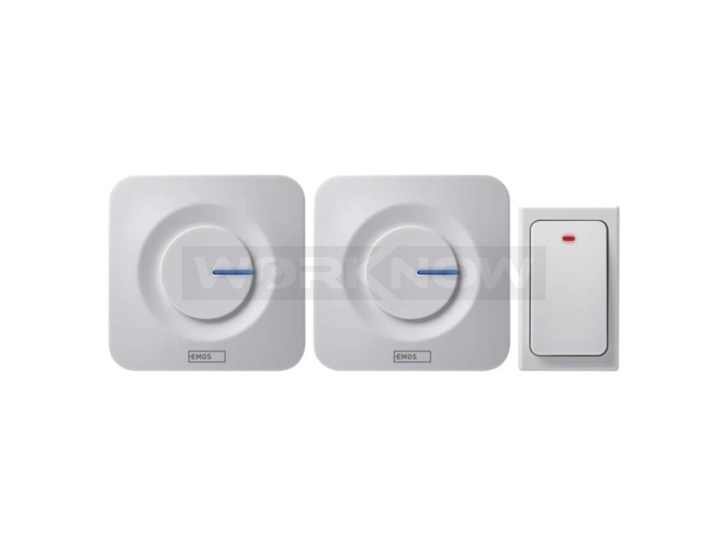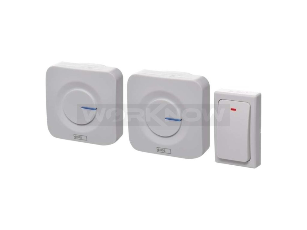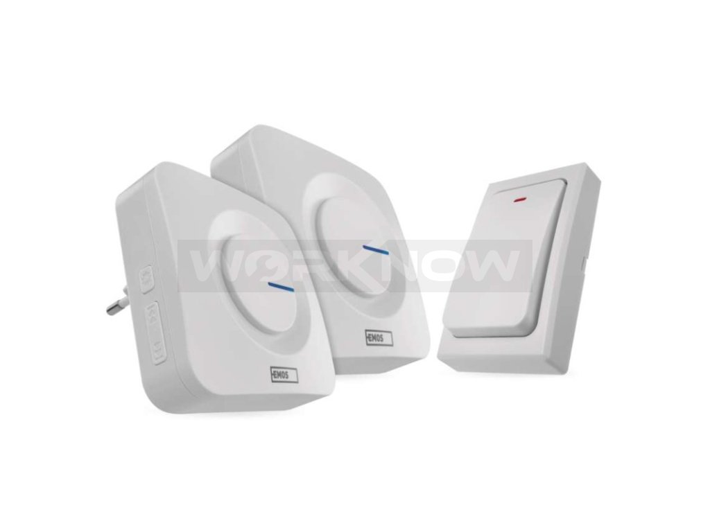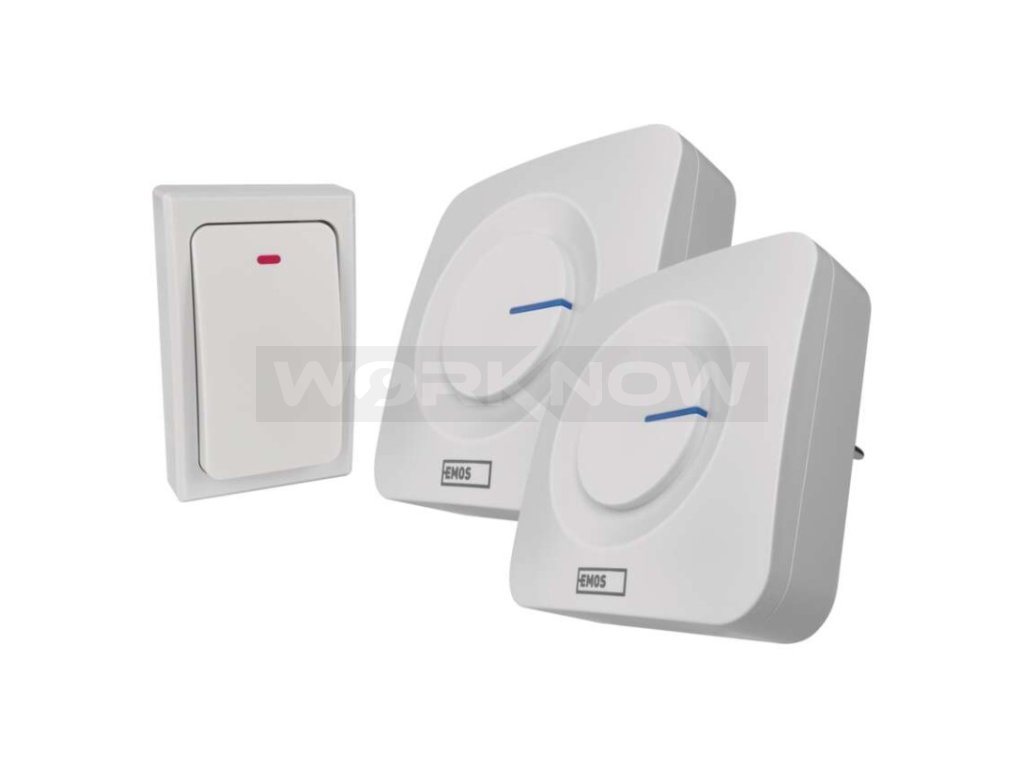 Moderní domovní zvonek EMOS v elegantní bílé barvě má zaoblené tvary a na svět svítí dvěma LED diodami, které signalizují jeho bezchybnou funkci. Dioda na tlačítku má barvu červenou, dioda na zvonku pak modrou. Mezi sebou pak obě části soupravy komunikují prostřednictvím rádiových vln o frekvenci 433,92 MHz.