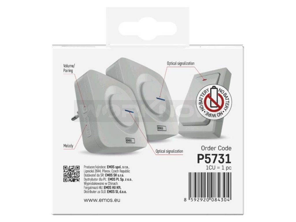 Bezbateriový domovní bezdrátový zvonek P5731 do zásuvky P5731