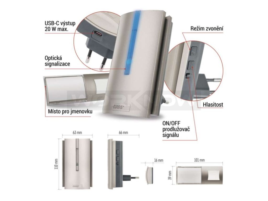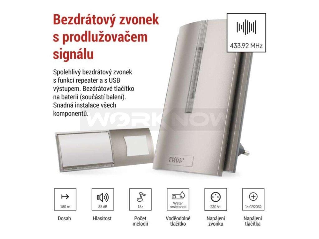 Spolehlivý zvonek s funkcí repeater a USB výstupem, který se hodí nejen k domu, ale i bytu, nebo do kanceláře. Velkou předností tohoto zvonku je jeho bezdrátové provedení.