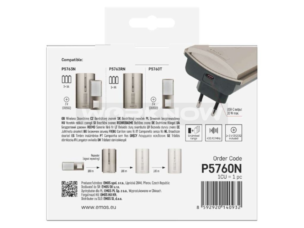 Domovní bezdrátový zvonek P5760N do zásuvky, s možností prodloužení signálu