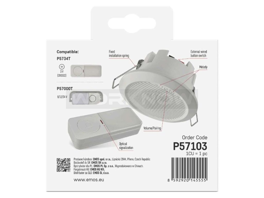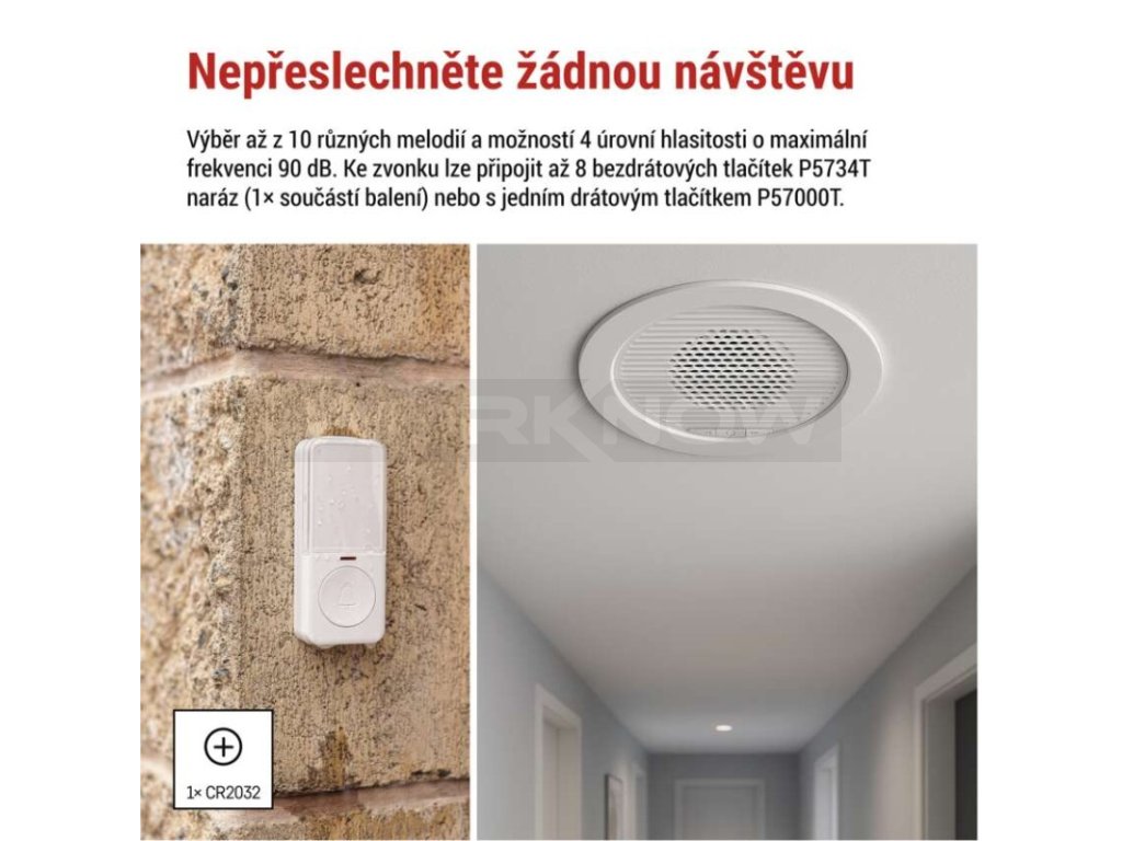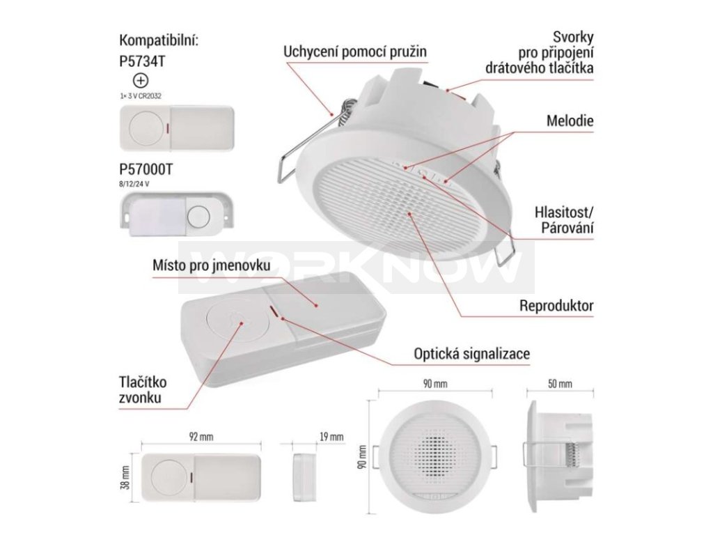 Domovní drátový/bezdrátový zvonek P57103, vestavný