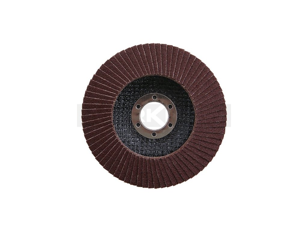 Lamelový kotouč, zrnitost: 100 druh zrna: oxid hlinitý pojivo: umělá pryskyřice podkladový materiál: pružná tkanina - 100% bavlna (240-260g/m2) provedení: vyhnutý otvor : 22,2mm, max. pracovní rychlost : 80m/s, max. přípustné otáčky: 13300 1/min, použití : broušení, obrušování, odrezování, odstraňování nátěrů, ...., rozměry : uvedeny v názvu výrobku.Dodatočné parametre