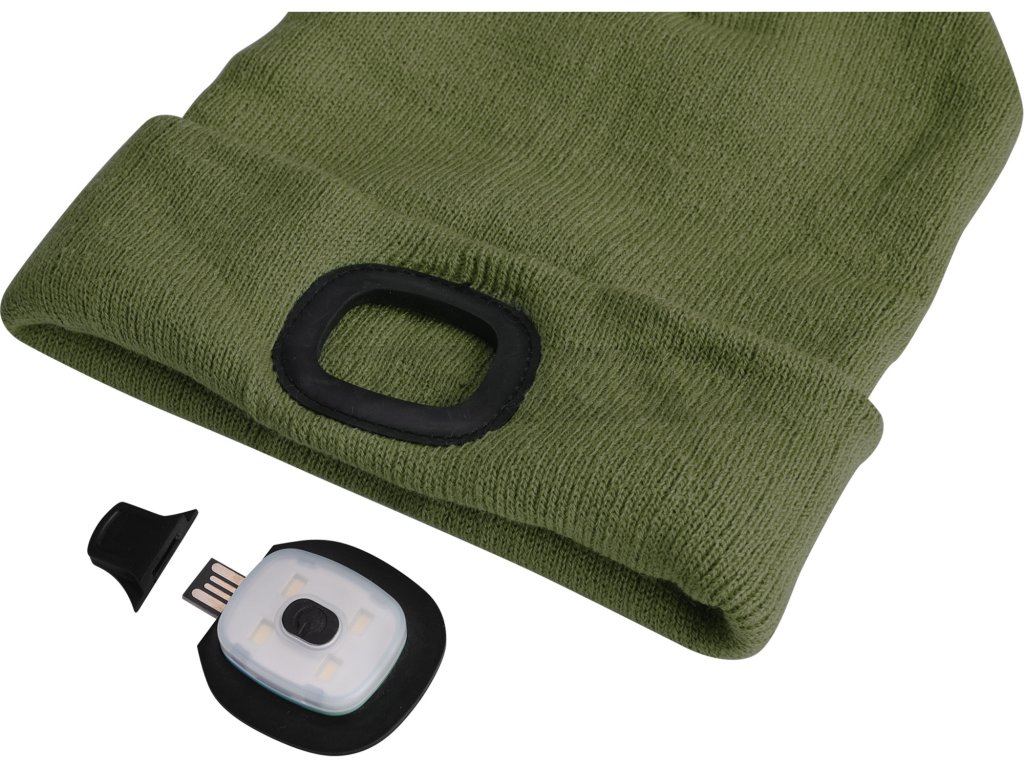 Čepice s čelovkou 4x45lm, USB nabíjení, tmavě zelená, univerzální velikost, 73% acryl a 27% polyester
