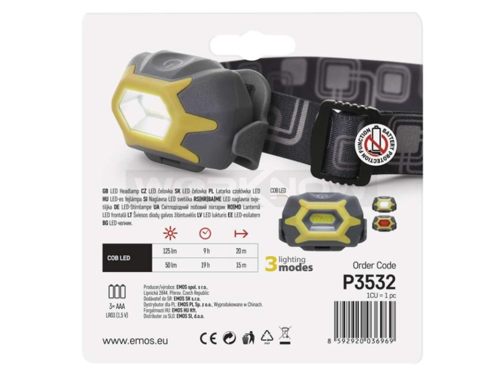COB LED čelovka P3532, 125 lm, 20 m, 3× AAA P3532