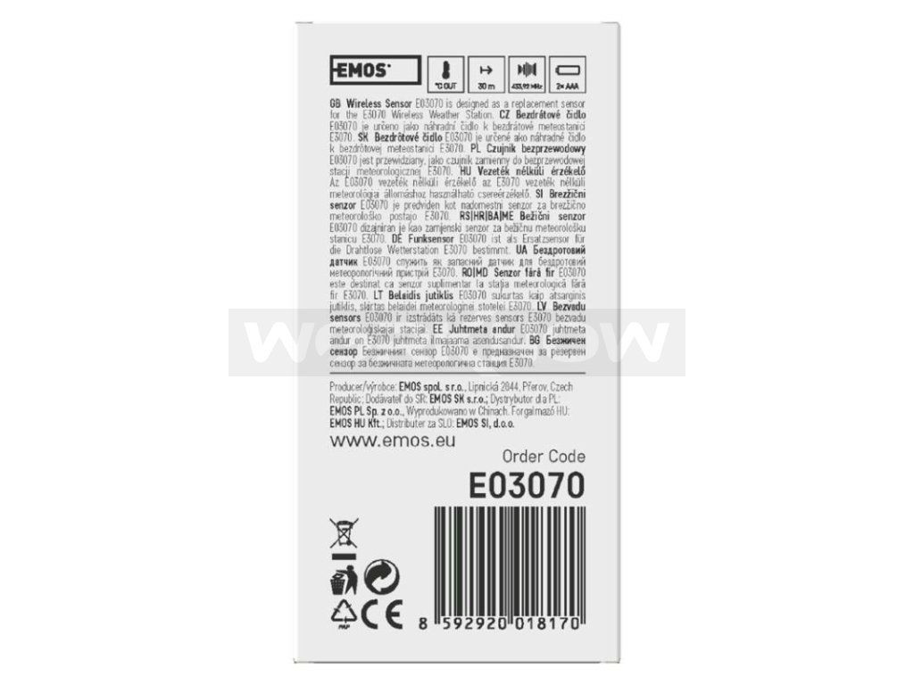 Bezdrátové čidlo pro meteostanice E3070 E03070